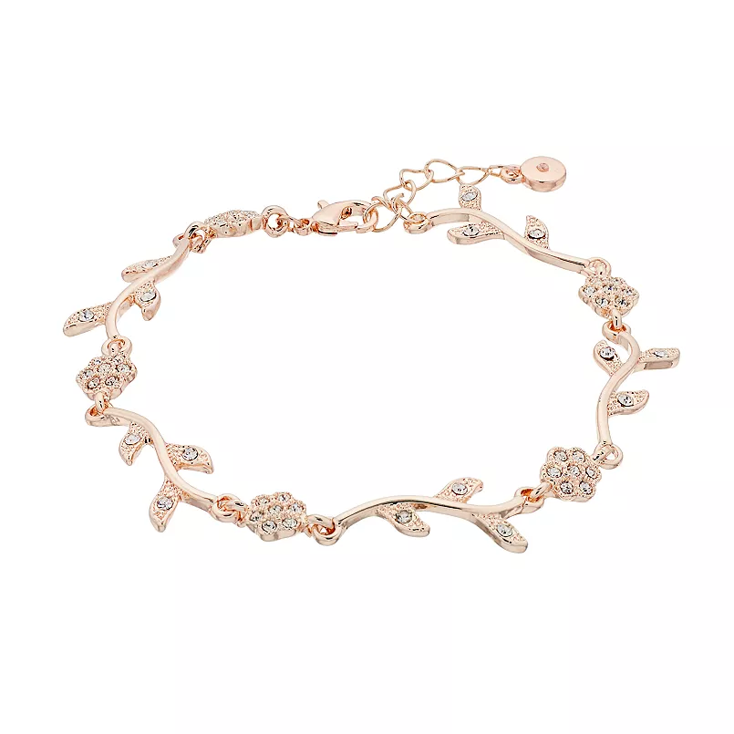 The LC Lauren Conrad Rose Gold Vine & Flower Bracelet is a stunning piece that blends elegance with nature-inspired beauty. Featuring delicate vines and intricate flower details in rose gold, this bracelet adds a touch of femininity and charm to any outfit.